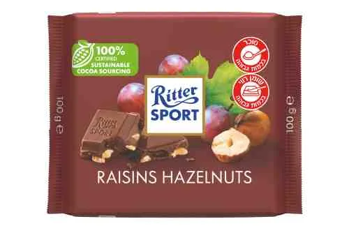 ריטר שוקולד חלב צימוקים ואגוזים לוז 100 גרם